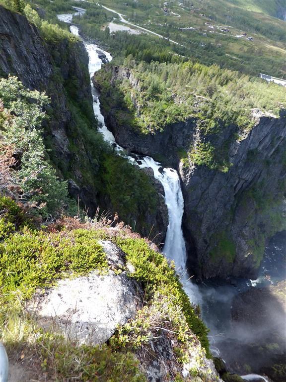 Åmot, von wo aus wir grün Gedrucktem einmal mehr hoch aufs Fjell mit seinen blühenden Moosbeeren und glitzernden Seen, jawohl,